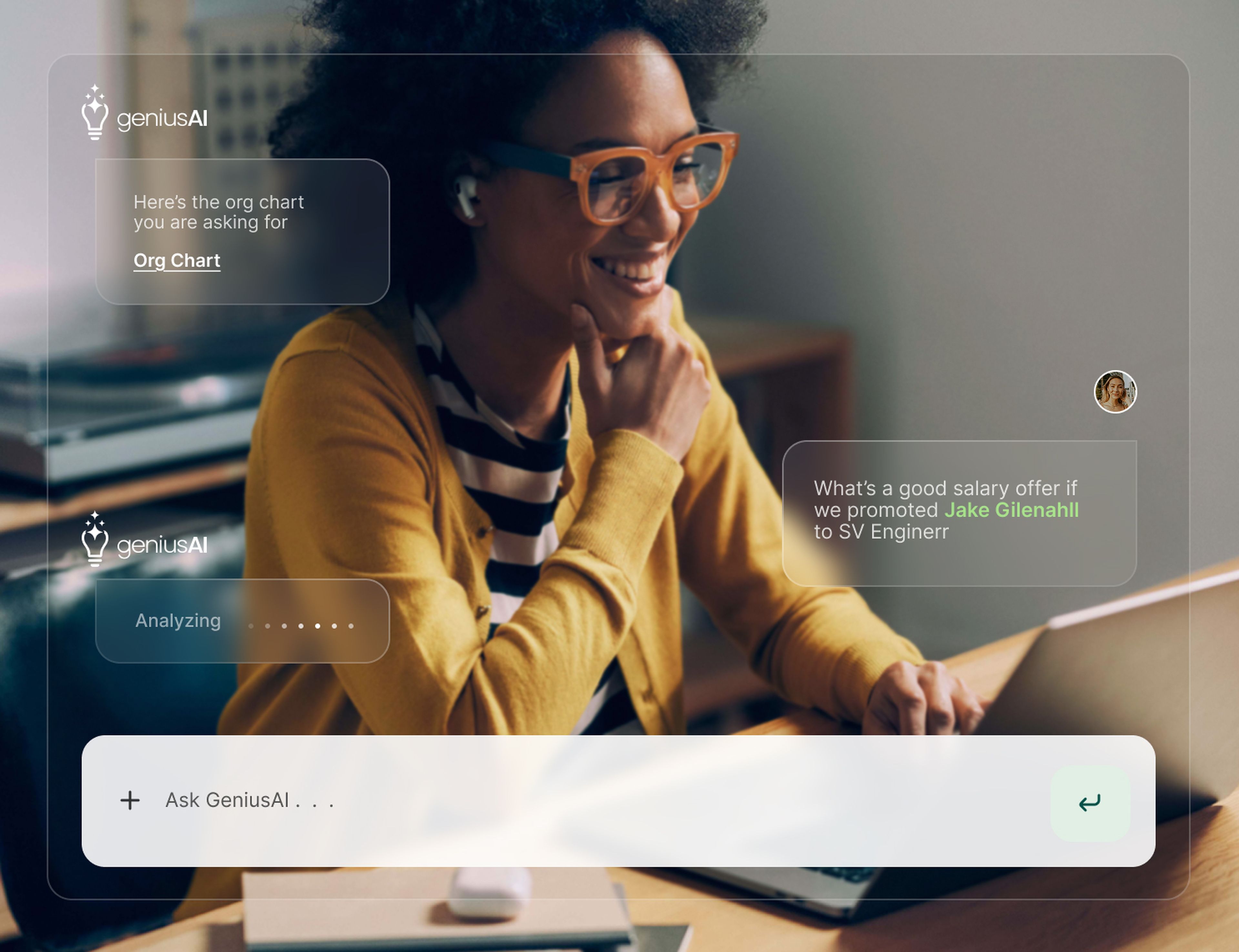 As employees use GeniusAI the company can train their Knowledge Base to finetune responses, providing detailed information about a company process, application or service to their user’s