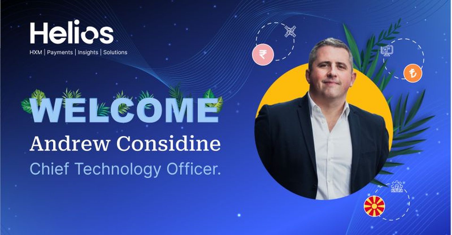 “At its core, Helios is a fintech, company, so when I was looking for an industry veteran to lead the launch of this global HCM and payments platform, Andrew’s proven track record of success around the world became pivotal in furthering the design and development of the Helios platform,” said Rick Hammell, Founder and CEO of Helios. “Building the leadership team who will bring our tech-enabled solutions to market had to be done with leaders who have seen every stage from start-up to scalable growth, and I know Andrew’s exceptional leadership and considerable expertise with global money moment automation and talent pay will lead Helios to new heights.”
